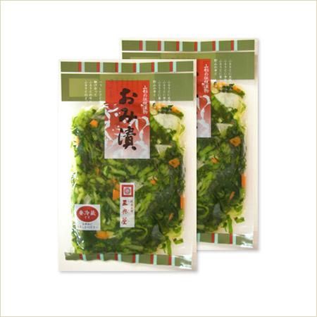 おみ漬の封を切ると青菜独特の爽やかな香りがし、しその実が青菜の持ち味を引き締めています。