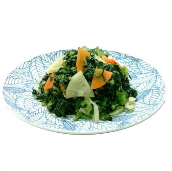 きざんだ青菜に大根、にんじん、しその実を加えたさっぱりとした浅漬け。